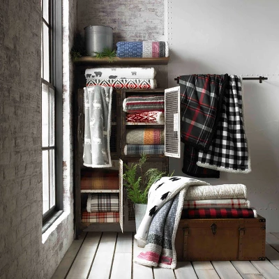 The Eddie Bauer fair isle collection is timeless. One of Eddie’s best-sellers, the fair isle throw features a classic heritage print in multiple hues and reverses to a solid ivory popcorn fleece. This throw is reversible for multiple uses. Features a faux-shearling trim as well as the signature Eddie Bauer logo patch detailing. Packaged in a ribbon with insert card, ready to be gifted. This throw is generously sized at 50″x70″. Easy care and easily packable, making it an ideal companion for travel. Available in multiple colors, sold separately.