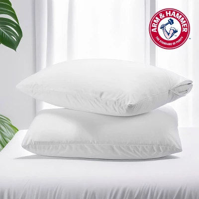 Elevate your sleep experience with the Arm & Hammer Easy Care Pillow Protector—designed to keep your pillow fresh, clean, and comfortable. Crafted from breathable 100% polyester, this protector offers superior comfort and durability. Featuring out proprietary product protection to help inhibit the growth of odor-causing bacteria for continuous odor protection. Complete with a zipper closure to provide a secure fit and fully encasing your pillow for reliable defense against everyday wear and tear. Machine washable for effortless care and lasting freshness—because a better night’s sleep starts with a protected pillow. Includes 2 pillow protectors.