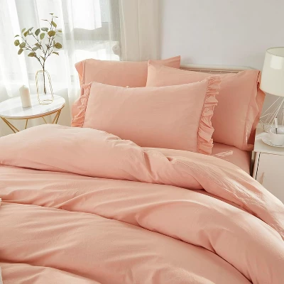 Our 2 piece blush duvet cover set including 1Twin/Twin XL Duvet Cover(68″W x 86″L, Flange: 4″W) and 1 Standard Shams(26″W x 20″H). Choose 100% cotton fiber as a natural material to make bedding more breathable. Ensure you feel warm in chill weather and cool in warm weather by absorbing moisture to adjust your climate of comfort all season during your sleep unlike regular polyester covers make you and your family feel sweaty