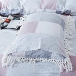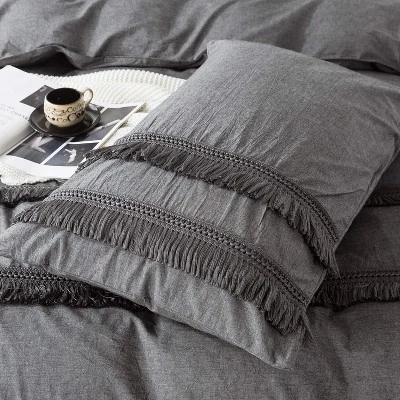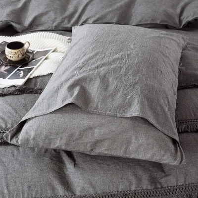 This Queen size 3-piece duvet cover set is made of 100% cotton fabric. Its surface color and texture become softer after a special treatment, and you can still feel its original fabric to some extent through the little creases on it. Fabric made of this material are not easy to deformation, color fading , ultra soft, comfortable, breathable, and durable.