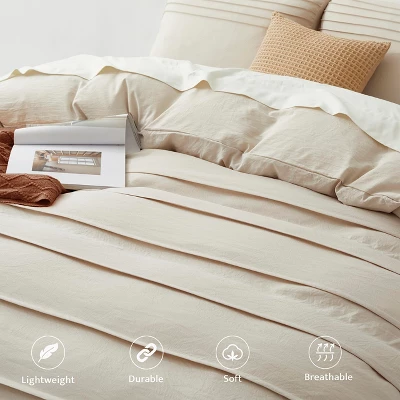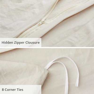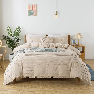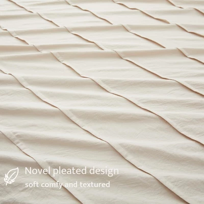 - he light khaki duvet cover features a pleated design that is decorative and textured with a solid color pattern.