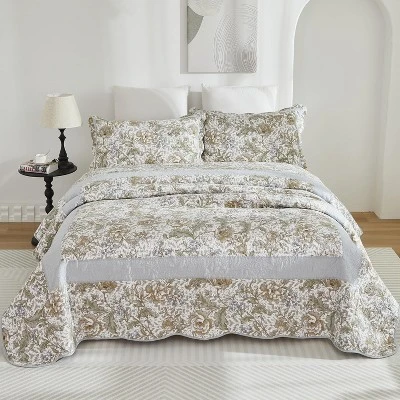 Elevate your bedroom decor with this floral bedding quilt set. The quilting has a patchwork design that gives great texture and depth to the look. The 100% cotton fabric is soft and breathable, perfect for year-round use. This lightweight quilt set features a timeless floral print, creating a cozy and refined look.