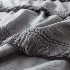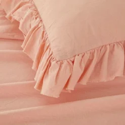 BAGOKIE Fringe Ruffle Linen Feel Textured Organic Natural 100% Cotton Duvet Cover Beige 3 Pieces