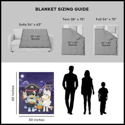 Get into the Halloween spirit with this Bluey Family Halloween Silk Touch Faux Shearling Throw Blanket! Feel the luxurious softness of the silk touch fabric on the front, perfect for cuddling up during spooky movie nights or chilly autumn evenings. Measuring a generous 50 x 60 inches, it’s the ideal size for both little ones and grown-ups alike.