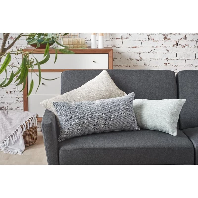 For a cool and modern update, our Roe geo decorative pillow is the perfect addition to any decor. This collection features an all over jacquard woven geo pattern with intricate detailing, creating beautiful texture and dimension. 100% soft yarn-dyed heavyweight cotton provides a casual touch and natural appeal, while the lofty polyester filling offers easy comfort and care. Spot cleaning recommended. Available in Dune, Navy and Seaglass.