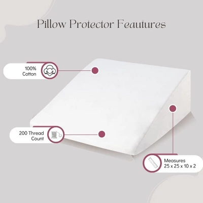 Protect your wedge pillow with our 100% cotton zippered wedge pillow covers. Our pillow protectors are made with a tight locking zipper that protects all sides of your pillow from dust, dirt, and allergens. They are breathable, hypoallergenic, and soft and smooth to the touch. Dimensions – 25 x 25 x 10 x 2”