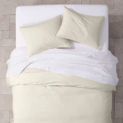 You’ll love to gift your bedding arrangement with a touch of luxury and plenty of comfort by adding the Heavyweight Linen Blend Duvet & Pillow Sham Set from Casaluna™. This heavyweight duvet and sham set features a classic and sophisticated look that’s easy to incorporate with existing bedroom decor, complete with solid color options that allow you to effortlessly style the rest of the space to your liking. Draped linen has been blended with rayon for an exceptionally soft feel you’ll love resting against, and a 100% cotton sateen backing adds a sleek, polished finish. The duvet set has been thoughtfully designed to make your home an oasis of comfort and calm, and you’ll appreciate that the cover features corner and side ties to hold the insert securely in place, as well as zipper closures on the raw-edge shams. Plus, the machine-washable construction allows for easy cleaning and care to keep it good as new.