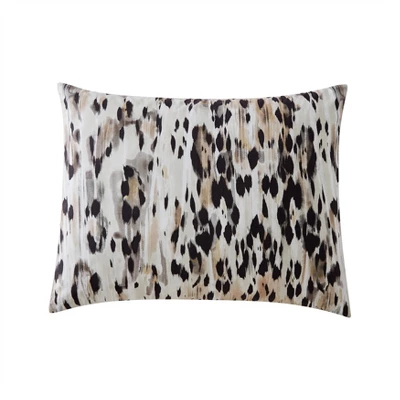 Kenneth Cole Abstract Leopard features a fashion-forward animal print in khaki and black reversing to a khaki textured print. A new bedding collection brings fashion to your home. Each set is made with 100% cotton and filled with 8oz 100% polyester for added loft and warmth. Each comforter set includes two shams for easy styling. Available in full/queen and king size. (full/queen size can fit either full or queen sized beds) oeko-tex certified. Machine washable for easy care
