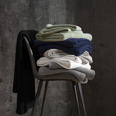 The Kenneth Cole essentials waffle blanket – made from 100% cotton, sourced in india. This hypo-allergenic waffle weave construction is durable, yet softens with each wash. Lightweight and perfect for year-round use; works well as a standalone piece or as an extra layer in the colder months. Includes one blanket. Blanket dimensions: twin blanket: 90″w x 60″l; full/queen blanket 90″w x 90″l; king blanket: 90″w x 108″l. Packaged with twill ribbon and insert cards, ready to be gifted. Machine washable for easy care. Available in other colors, sold separately