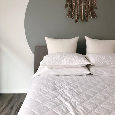 Mattress pad and cover.No bed is complete without a mattress pad, and not all are created equal. This luxury mattress pad adds an extra layer of fluff, comfort, and protection. The quilted top provides an airy, light feel, and the sides stretch to snugly contour the mattress.The quilting ensures no bumps or lumps, just continuous comfort. Conveniently machine washable/dryer safe. Naturally non-allergenic cotton, a perfect choice for masters, guest or kids bedroom.