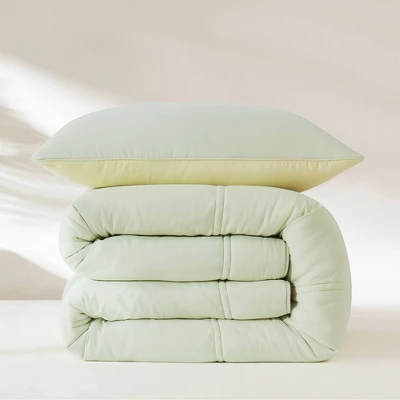 The luxurious comfort of this Oslo Quilted Comforter Set will have you wanting to stay in bed all day! Great for any bedroom or dorm room, this super soft set is reversible with each side featuring a different solid color. The 3 piece bedding set includes 1 comforter and 2 shams, while the 2 piece bedding set includes 1 comforter and 1 sham. Crafted from a soft microfiber and ultra light polyfill this set is STANDARD 100 by OEKO-TEX® certified, all components have been tested and certified free from harmful substances. Machine washable.