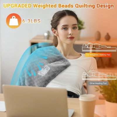 Massaging Weighted Heating Pads for Back, Electric Heating Pad with Massaging Vibrations, Auto Shut Off, 12 Settings- 3 Heat, 9 Massage, 20″ x 24″, 6Lbs, 3D Pattern Fabric, Grey