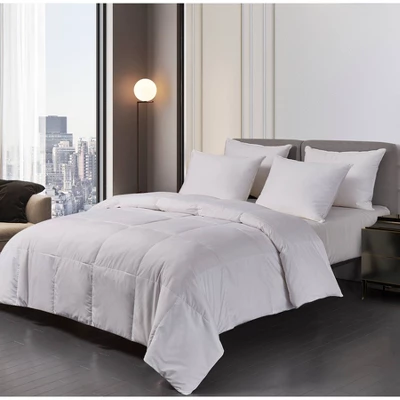 Enjoy the affordable luxury of our natural feather and down fiber blend comforter. We start with a super soft microfiber cover and generously fill it with a proprietary blend of 60% feather fiber, 25% down fiber and 15% feathers. You’ll appreciate the 14 inch end to end sewn through boxes that will keep the natural fill from shifitng–no more cold spots. For added durabiltiy we’ve added a double stitched self piping around the edges. Certified by the American Down and Feather Council so you know you’re getting a quality product.