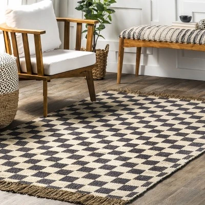 NuLOOM Connie Checkered Wool/Jute Tasseled Area Rug