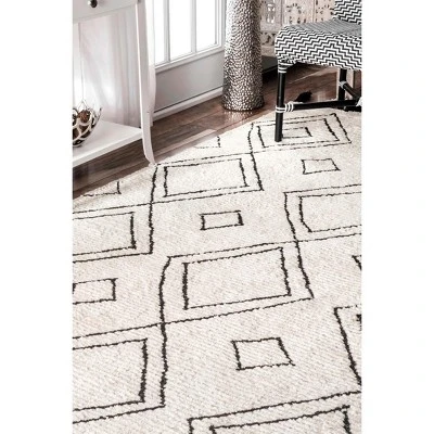 Decorate your home with this diamond patterned tassel shag rug. This Moroccan-inspired area rug is made wholly of wool, complete with a charming, modern geometric layout worthy of nearly any theme. The soft, plush area rug was meticulously hand- crafted to create softness underfoot. A rug pad is recommended to prevent slipping and to keep the rug lying flat in one place.