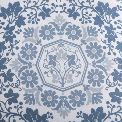 - Stylized Leaves And Vines Surround Decorative Medallions, Creating A Graphic Damask In Varying Tones Of Blue On A White COTTON Ground Panel Cut Standard Shams With Centered Medallions Add A Custom Look To Complete This Simple, Yet Elegant Ensemble