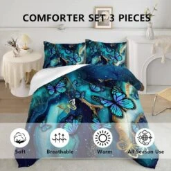 Boersma 3D Blue Butterflies Comforter Set Golden Full Comforter Set Set 1 Quilt And 2 Pillowcases All Season