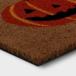 1'6″ X 2'3″ Festive Gather Pumpkin Shaped Indoor/Outdoor Coir Doormat Orange/Brown – Entryways