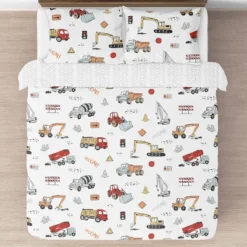 Sweet Jojo Designs Full/Queen Comforter Bedding Set Construction Truck Red Blue And Grey 3pc
