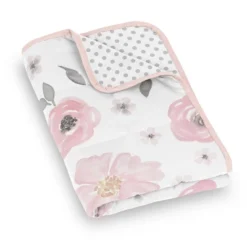 Sweet Jojo Designs Girl Toddler Weighted Blanket 5lbs. For Kids Watercolor Floral Pink And Grey