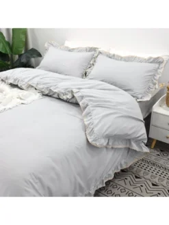 ZHH Lace Preppy Ruffled Duvet Cover Twin Size Set With 1 Duvet Cover And 2 Pillow Shams – Twin, Grey