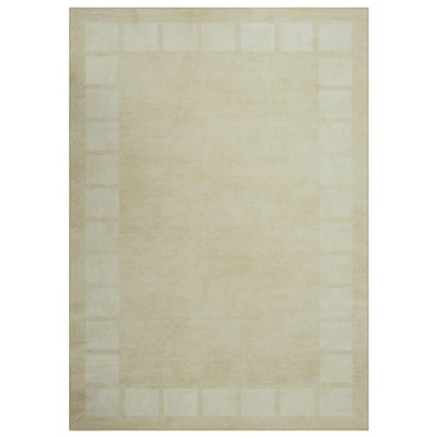 Bring comfort and modern style to any room with this geometric velvet area rug. Its plush low-pile surface is gentle underfoot, while the subtle distressed edge adds a chic, contemporary vibe. The grip backing helps your rug stay put, even in active spaces. Easy-care construction means machine washing is simple. Perfect for bedrooms, living areas, and wherever a touch of cozy style is needed.