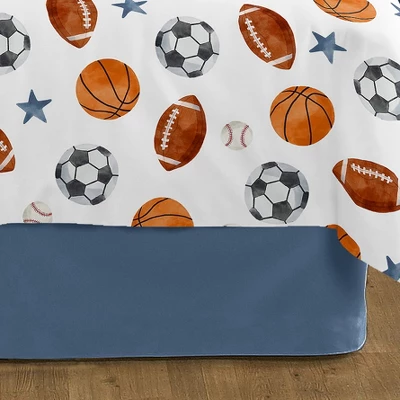 Sweet Jojo Designs Boy Dust Ruffle Queen Bed Skirt Watercolor Sports Theme Blue