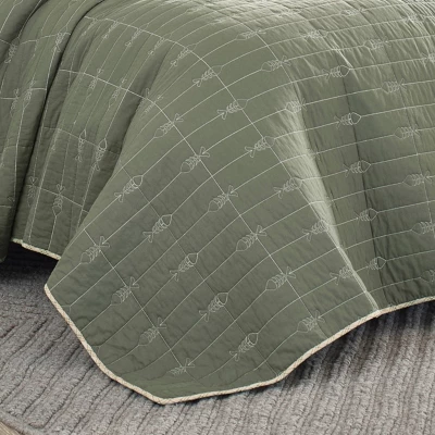 Transform your bedroom into a cabin retreat with the Eddie Bauer Troutdale cotton quilt set. The stylish green quilt and coordinating shams feature a trout stitch design with a versatile khaki plaid reverse. The all-cotton set is pre-washed for added softness and its lightweight comfort offers year-round versatility. Perfect alone or as a layering accent, this rustic quilt set is an essential update to any bedding ensemble. Quilt is polyester filled and machine washable for easy care. Twin quilt set includes: one quilt (88″L x 68″W) and one sham (21″L x 27″W). Full/Queen quilt set includes: one quilt (90″L x 90″w) and two shams (21″L x 27″W). King quilt set includes: one quilt (96″L x 104″W) and two shams (21″L x 37″W)