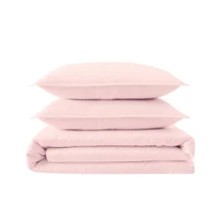 Pleated face on the duvet and shams with a solid color reverse. The face cloth is 100% microfiber polyester with a pleated finish to provide texture for your bed. Duvet and sham face and back cloth is 100% brushed microfiber polyester with polyester filling. This item is machine washable; however, please take care to use the appropriate size machinery.