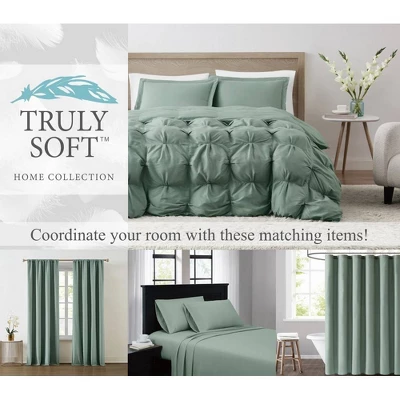 Add the Truly Soft Everyday Solid Down Alternative Blanket to your home for a soft, breathable, and versatile piece that enhances your sleep and relaxation experience. Includes: one blanket 90 inches wide by 90 inches long. Face and reverse fabric is a plain woven 100% microfiber polyester with 100% polyester filling.